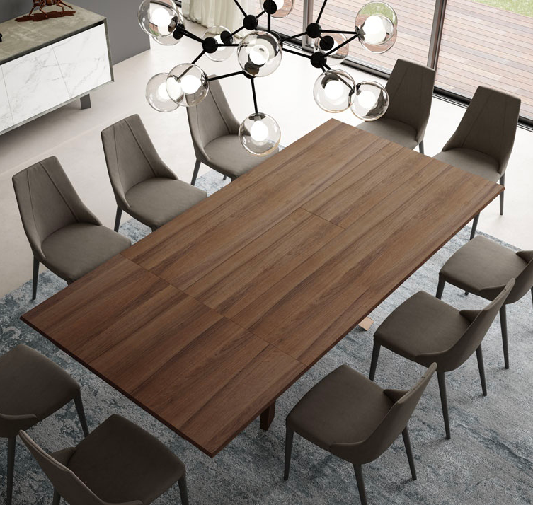Tavolo salvaspazio con piano allungabile sia in larghezza che in lunghezza. Apertura semplice e intuitiva consente di aggiungere fino a 12 posti a tavola senza preoccupazioni!